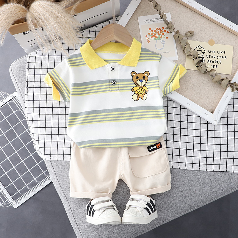 Teddy Print T-Shirt and Shorts Set for Kids (White)
