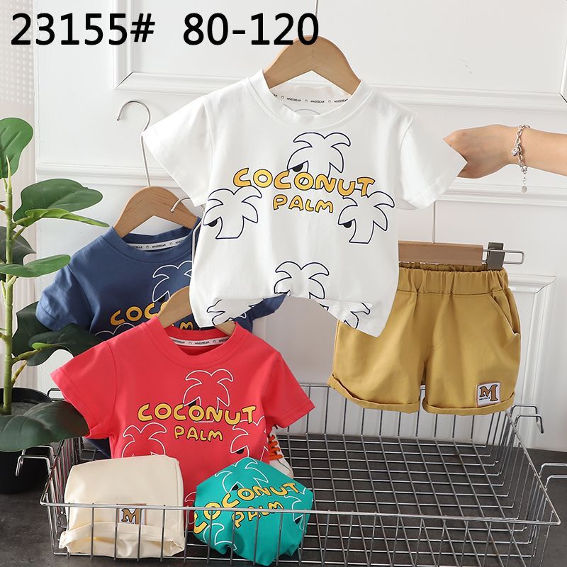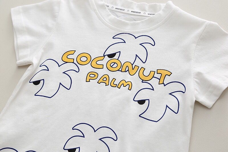 The lightweight cotton T-shirt features a cute coconut palm print, paired with matching shorts for a coordinated look. Soft, breathable fabric keeps your child cool and comfy, while the elastic waistband on the shorts makes dressing easy for parents.