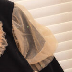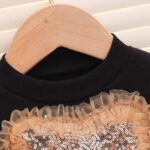 Dress your little princess in elegance with this stunning black and golden tulle party dress. Designed with puffed net sleeves and a delicate layered skirt, it features a shimmering heart embellishment at the center that adds charm to the outfit. Perfect for birthdays, festive celebrations, or special occasions, this dress combines comfort with timeless style.