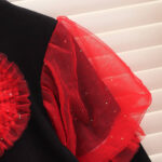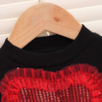 Dress your little princess in elegance with this stunning black and golden tulle party dress. Designed with puffed net sleeves and a delicate layered skirt, it features a shimmering heart embellishment at the center that adds charm to the outfit. Perfect for birthdays, festive celebrations, or special occasions, this dress combines comfort with timeless style.