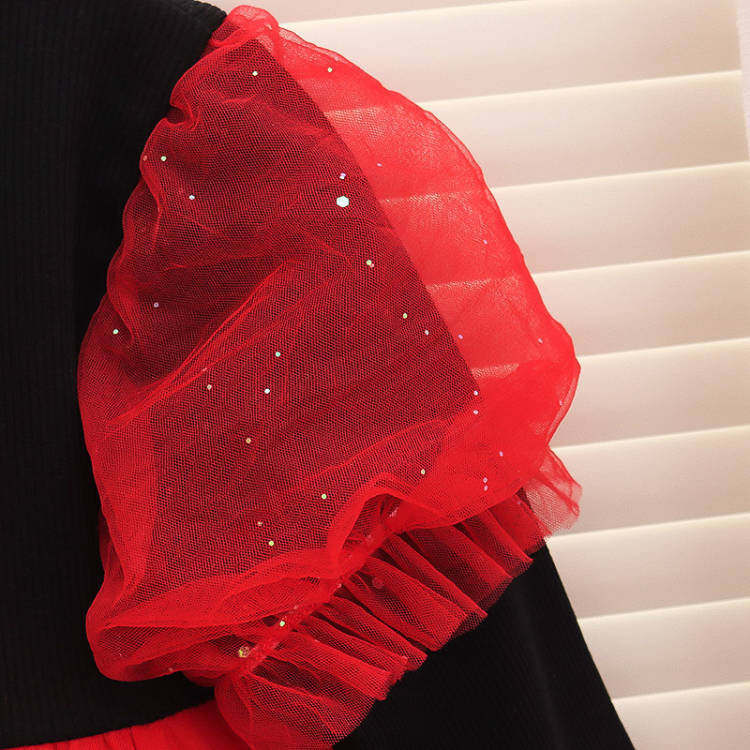 Golden Heart Tulle Party Dress for Baby Girls (Red)
